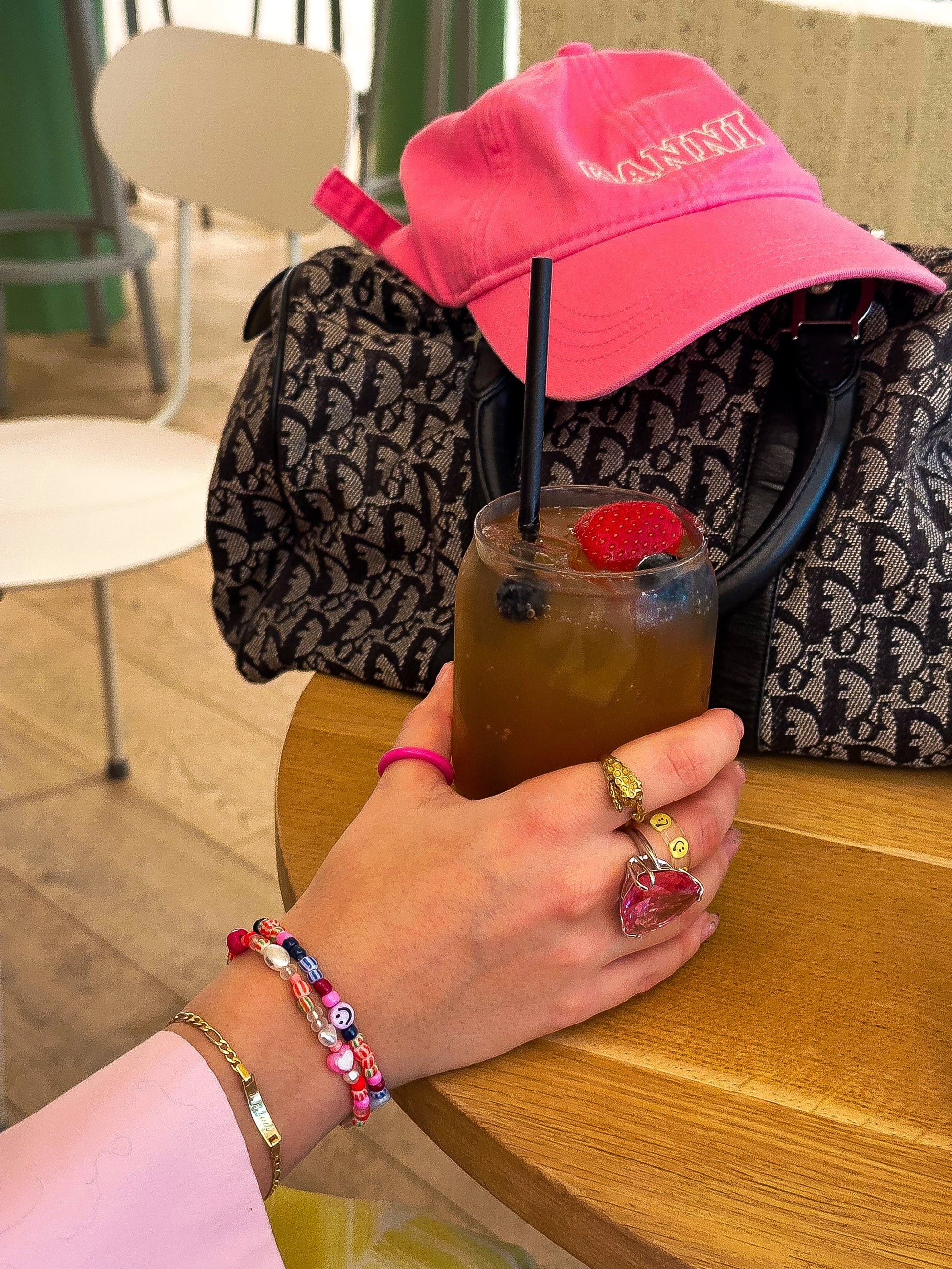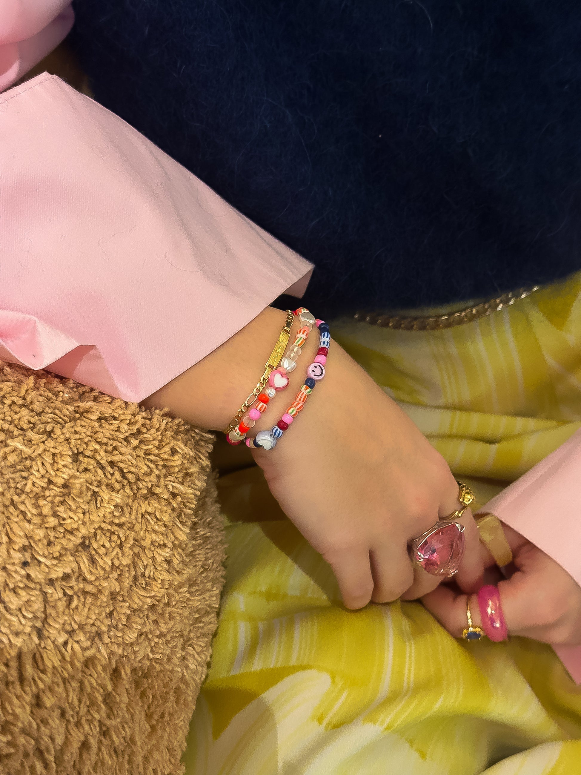 A sweet, stretchy bracelet made with a mix of heart-shaped freshwater pearls, colorful heart charms, and cute beads. Since it's on an elastic band, there's no clasp, making it easy to wear.