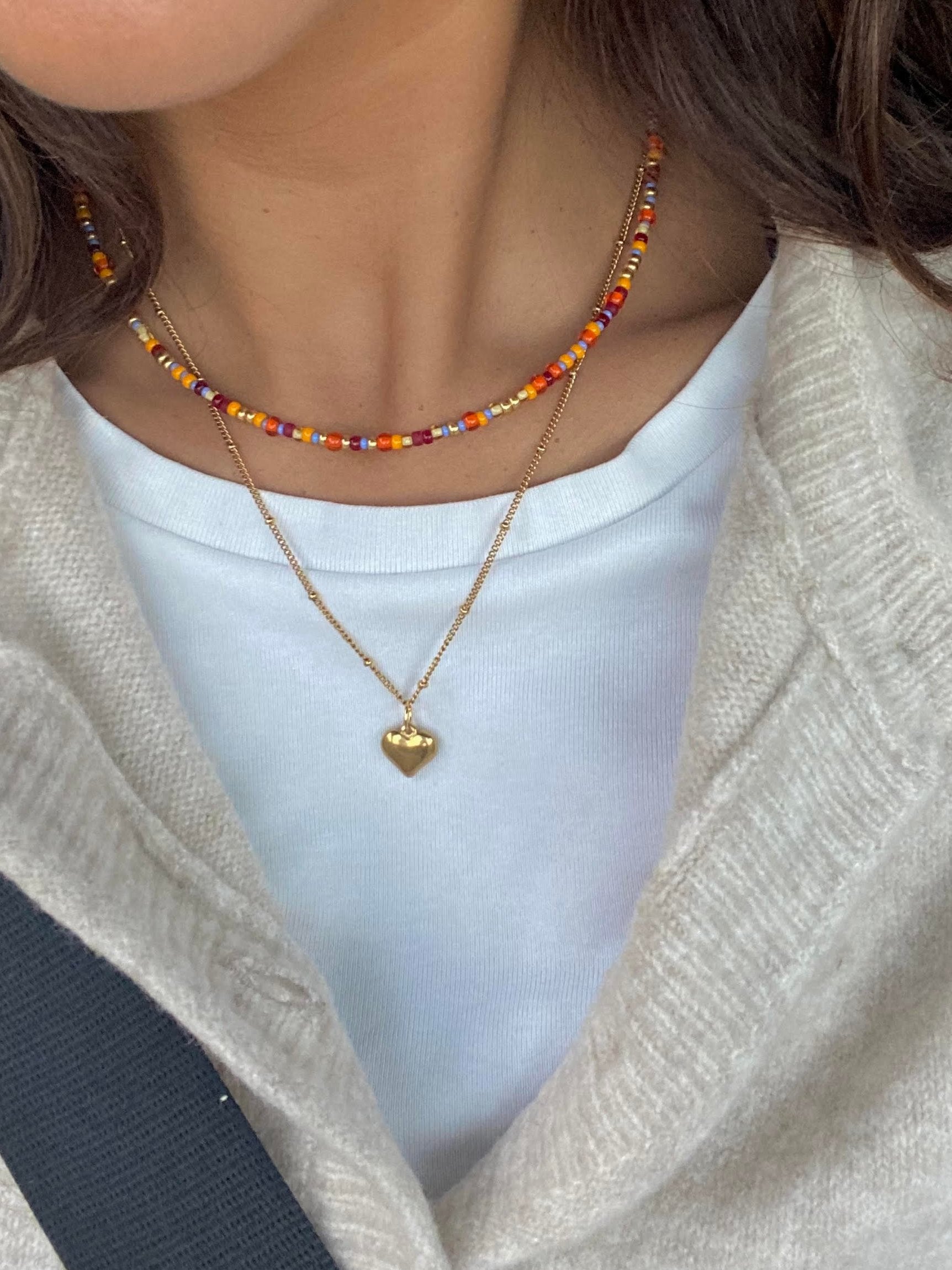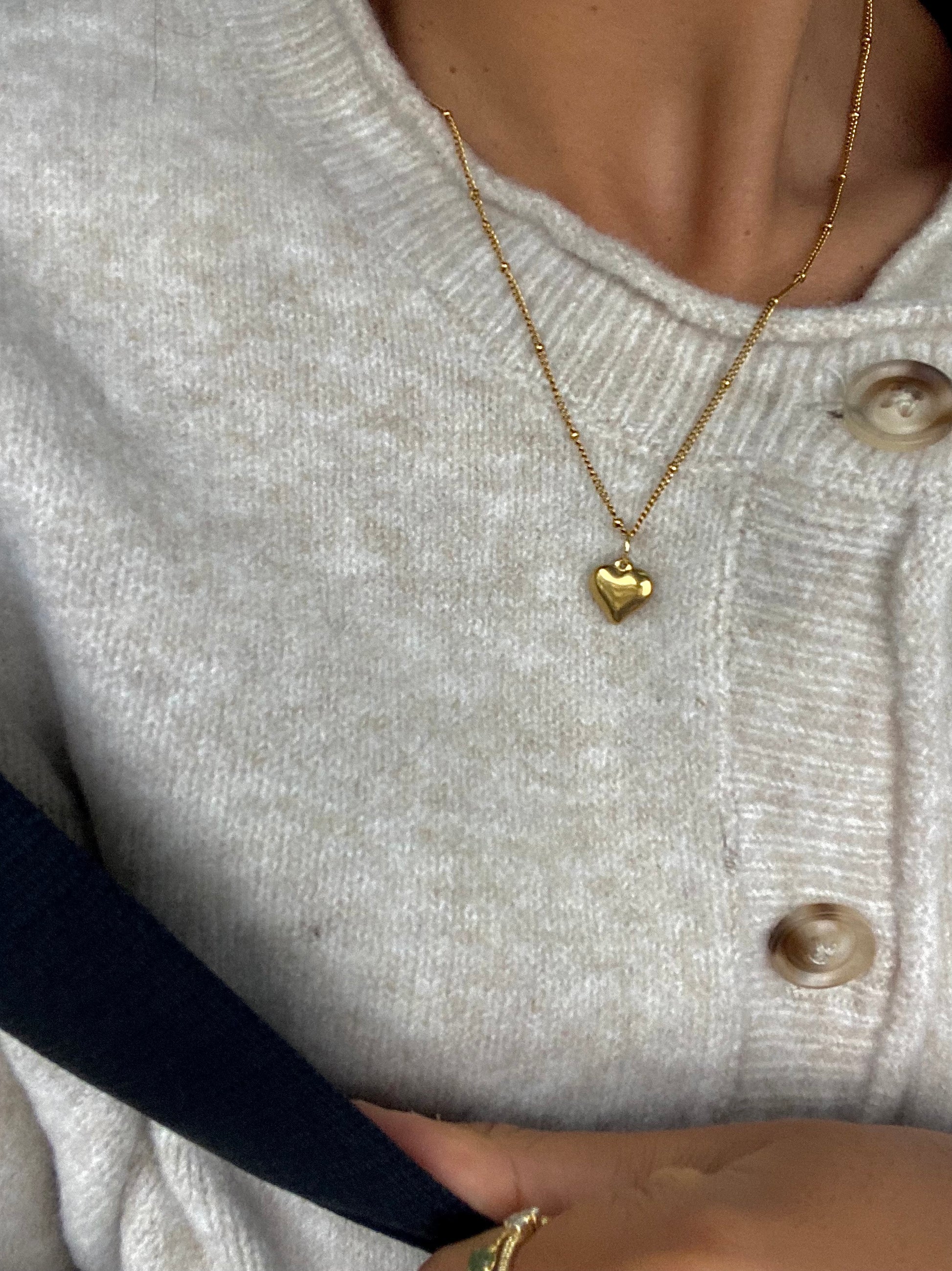 This necklace features a18K gold-plated stainless steel chain with a small stainless steel heart charm. It's perfect for layering and adds a subtle touch of elegance to any outfit, making it a versatile accessory for every season.